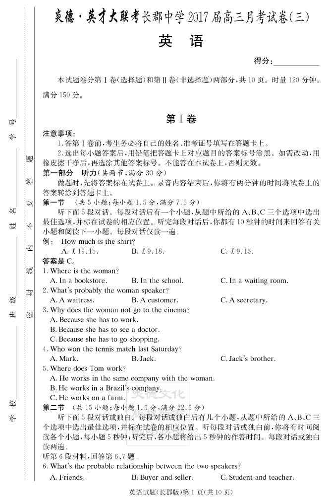 | 資源類(lèi)別: | 名校月考 | |