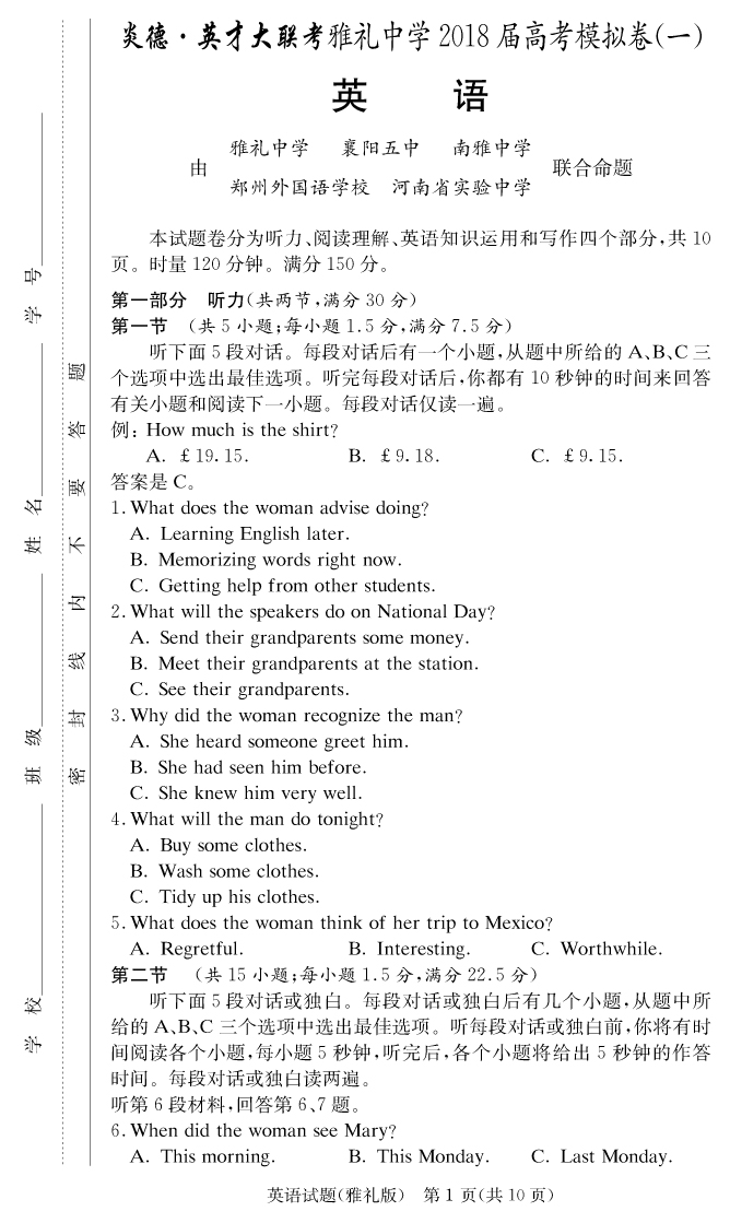 | 資源類別: | 名校月考 | |