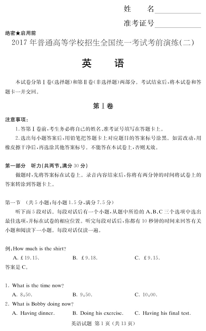 下一篇:【語文】2017年普通高等學校招生全國統(tǒng)一考試考前演練(二)