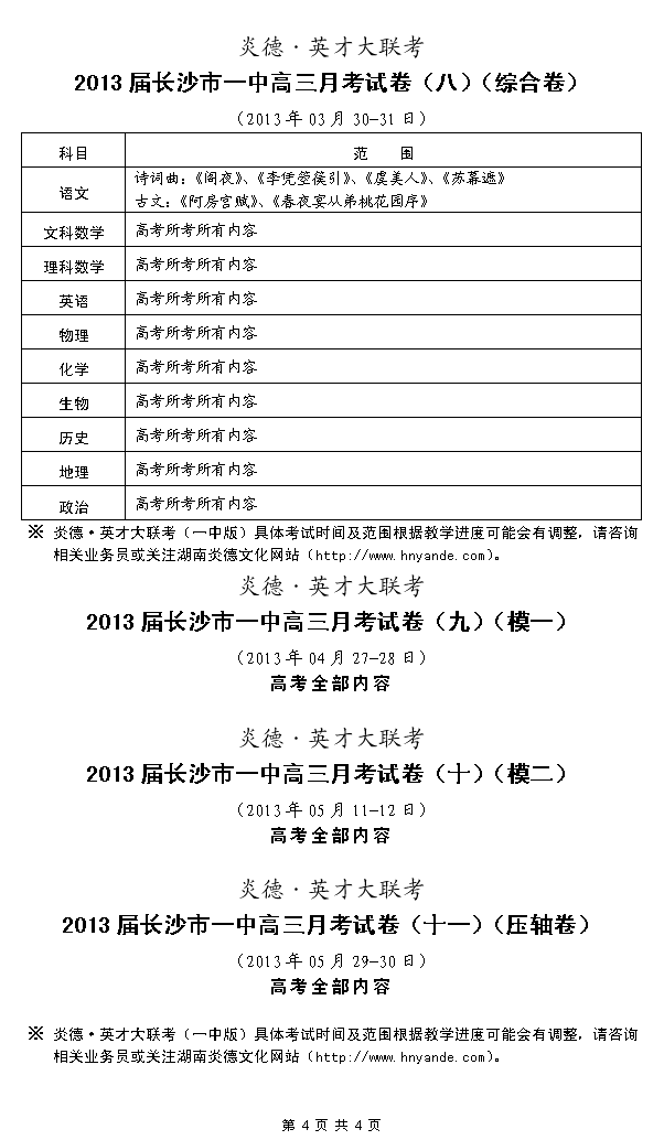 來源:炎德文化點擊:2012-09-11 10:55:34收藏本文當(dāng)前位置:考試范圍 長沙一中 高三 正文