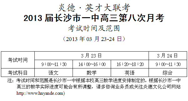 炎德英才大聯(lián)考長沙市一中2013屆高三第八次月考考試時間