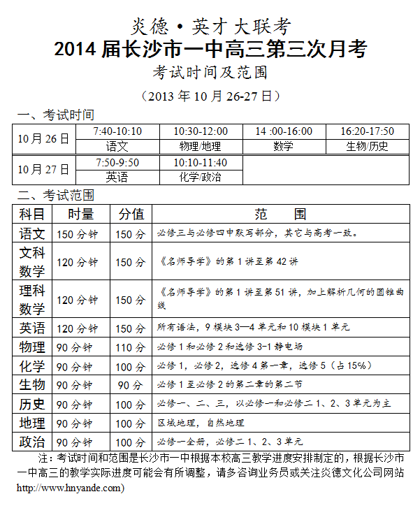上一篇:炎德英才大聯(lián)考長沙市一中2014屆高三長沙市一中第二次月考考試時間和范圍(2013.10.02