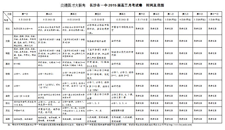 下一篇:炎德英才大聯(lián)考長(zhǎng)沙市一中2015屆高三第2次月考考試時(shí)間和范圍(2014.09.20-21)