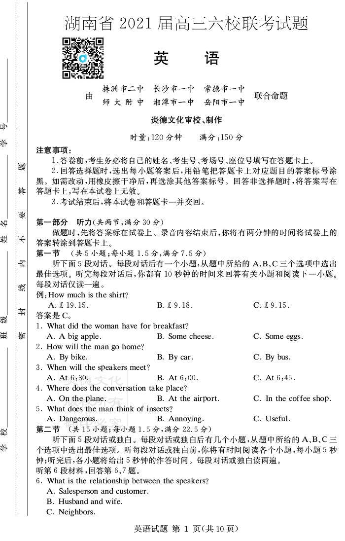 | 資源類別: | 名校月考 | |