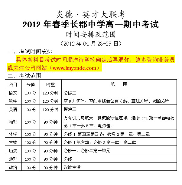 上一篇:2012春季長郡中學(xué)高一期末考試時間及范圍