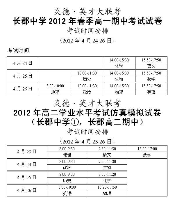 下一篇:2012春季長(zhǎng)郡中學(xué)高一高二期末考試時(shí)間及范圍