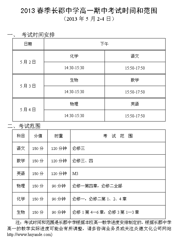 下一篇:2013年春季長郡中學高一高二期末考試時間范圍(2013.07.05-07)