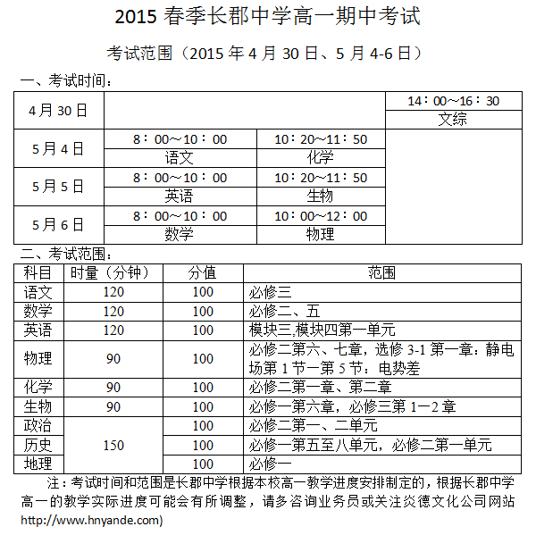 下一篇:2015年春季長郡中學(xué)高一期末考試考試范圍(2015年7月8-10日)