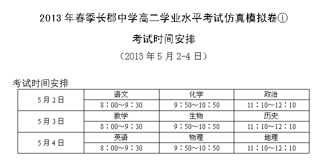 2013年春季長(zhǎng)郡中學(xué)高二學(xué)業(yè)水平考試仿真模擬卷①考試時(shí)間范圍(2013.05.02-04)