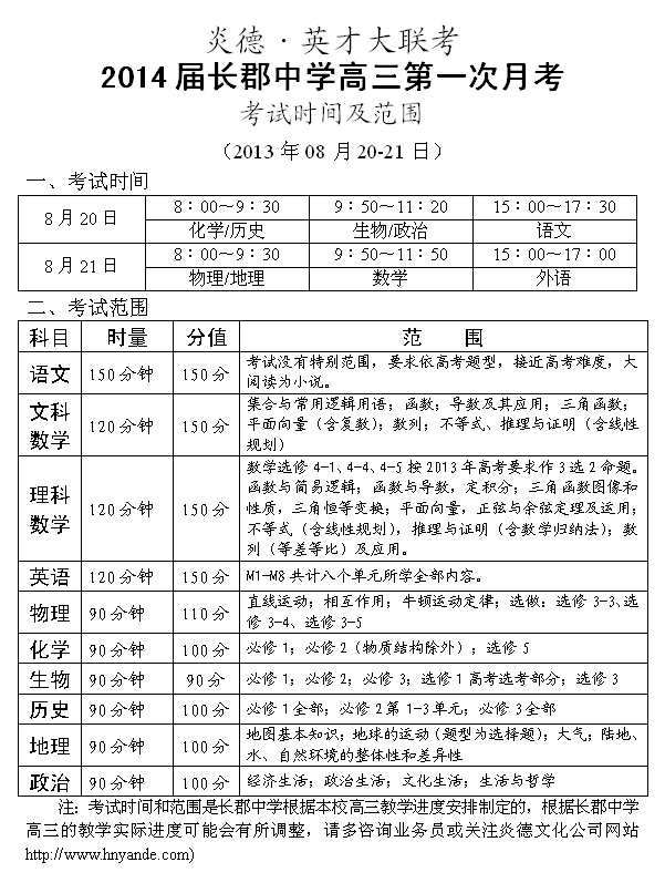 下一篇:炎德英才大聯(lián)考長郡中學(xué)2014屆高三月考試卷考試時(shí)間和范圍(第1-10次)