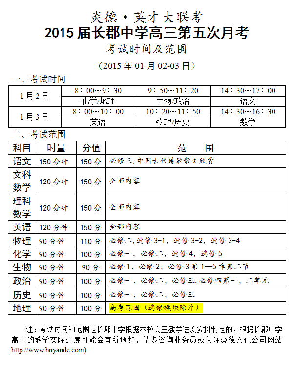 來源:炎德文化點擊:2014-12-23 15:58:57收藏本文當前位置:考試范圍 長郡中學 高三 正文