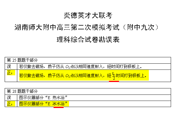 炎德英才大聯(lián)考湖南師大附中2012屆高三第二次模擬考試(附中九次月考)勘誤表