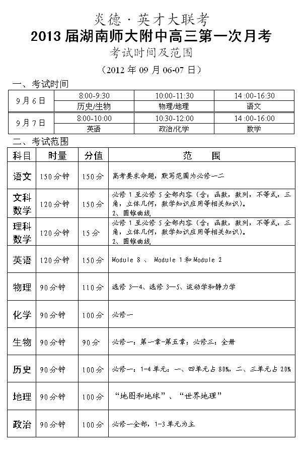 下一篇:炎德英才大聯(lián)考湖南師大附中2013屆高三月考試卷考試時間和范圍(第2-10次)