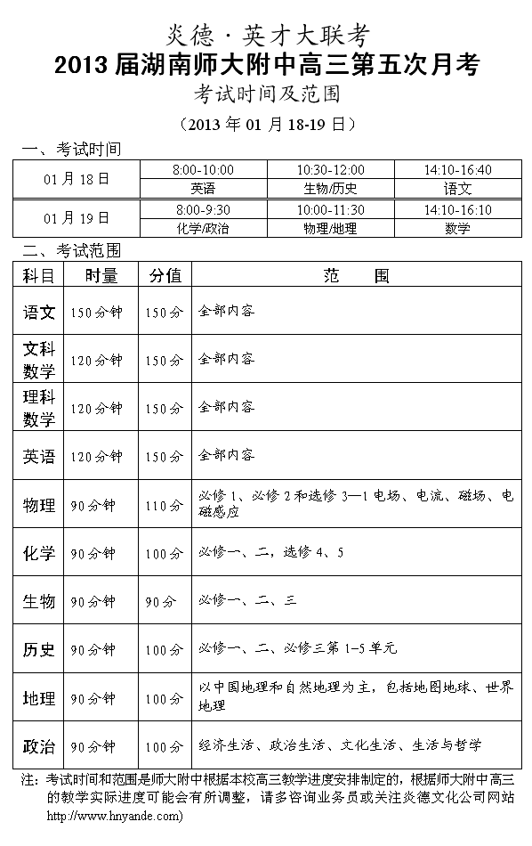 來(lái)源:炎德文化點(diǎn)擊:2013-01-12 14:25:04收藏本文當(dāng)前位置:考試范圍 師大附中 高三 正文