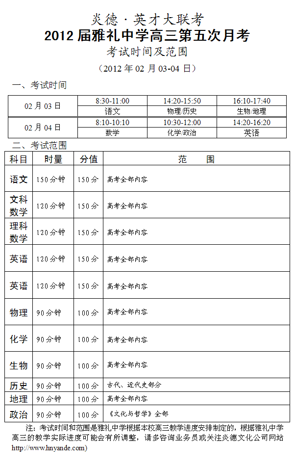 來(lái)源:炎德文化點(diǎn)擊:2012-01-31 17:13:21收藏本文當(dāng)前位置:考試范圍 雅禮中學(xué) 高三 正文