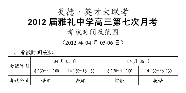 下一篇:炎德英才大聯(lián)考雅禮中學2012屆高三第一次模擬(第八次月考)考試時間和范圍
