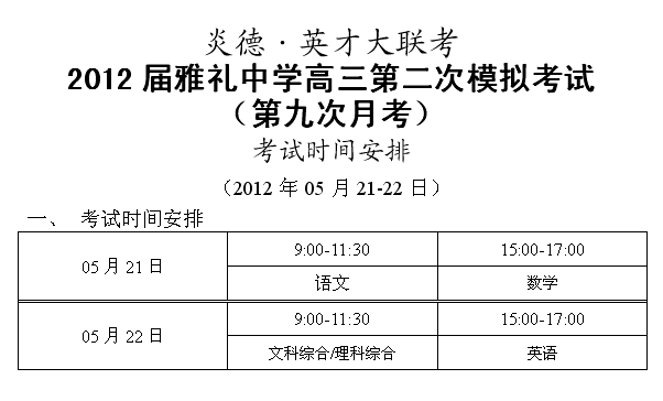 上一篇:炎德英才大聯(lián)考雅禮中學2012屆高三第一次模擬(第八次月考)考試時間和范圍