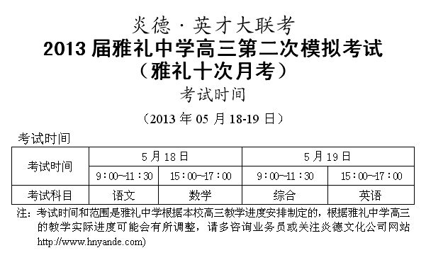 來(lái)源:點(diǎn)擊:2013-05-14 09:28:53收藏本文當(dāng)前位置:考試范圍 雅禮中學(xué) 高三 正文