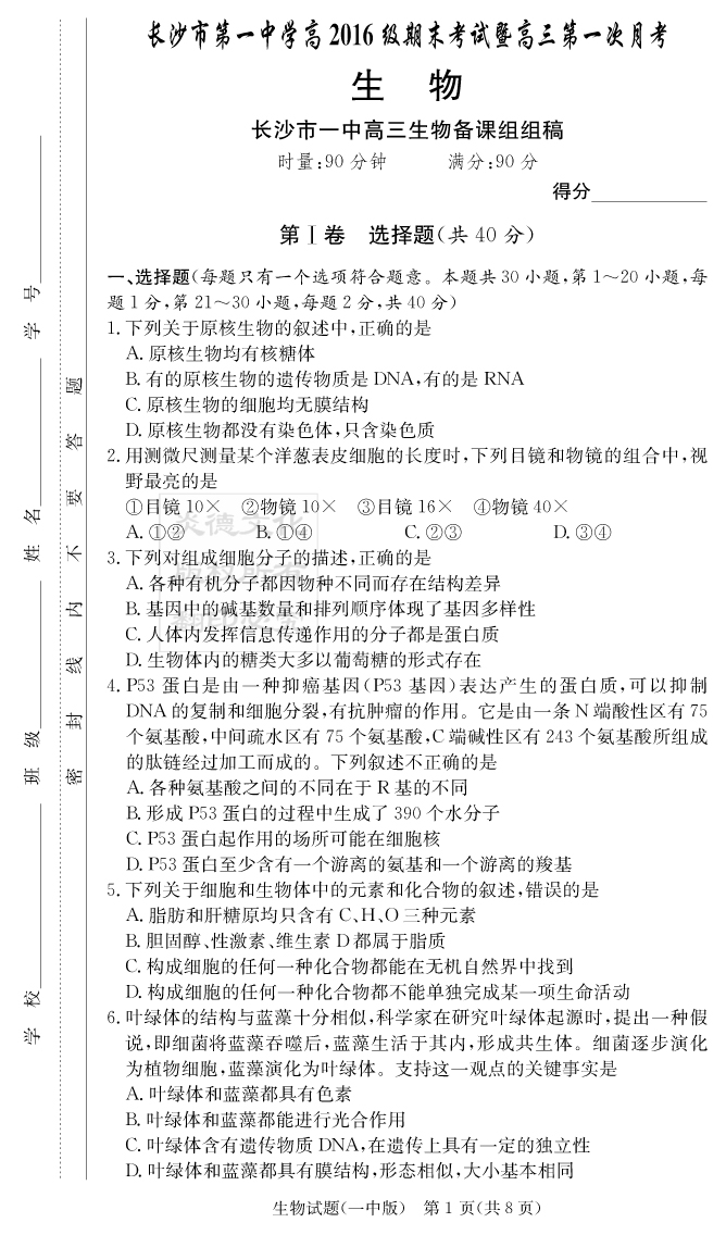 | 資源類別: | 名校月考 | |