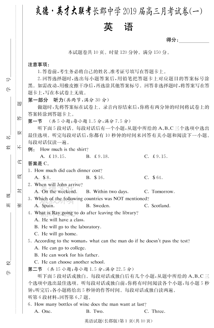 | 資源類(lèi)別: | 名校月考 | |