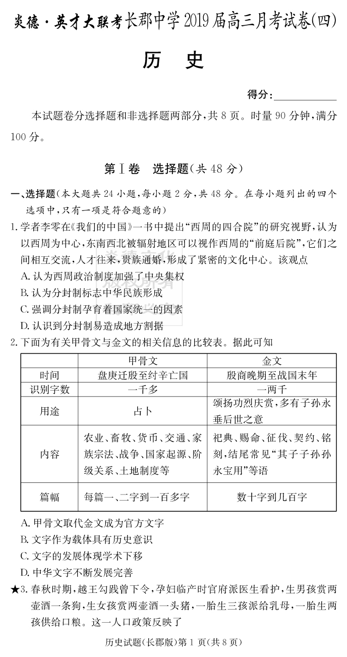 2026湖南師大附中新高考考前小題訓練·歷史