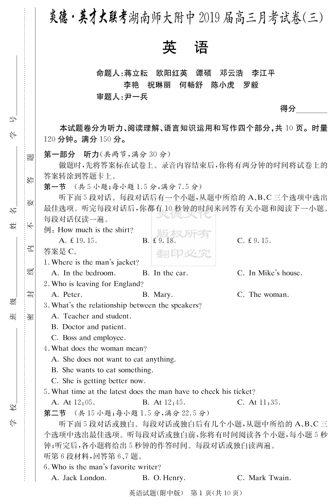 | 資源類別: | 名校月考 | |