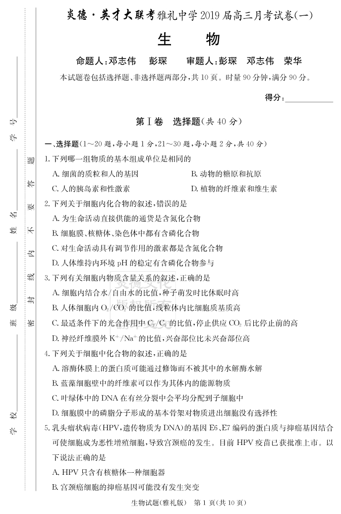 資源類(lèi)別: 名校月考