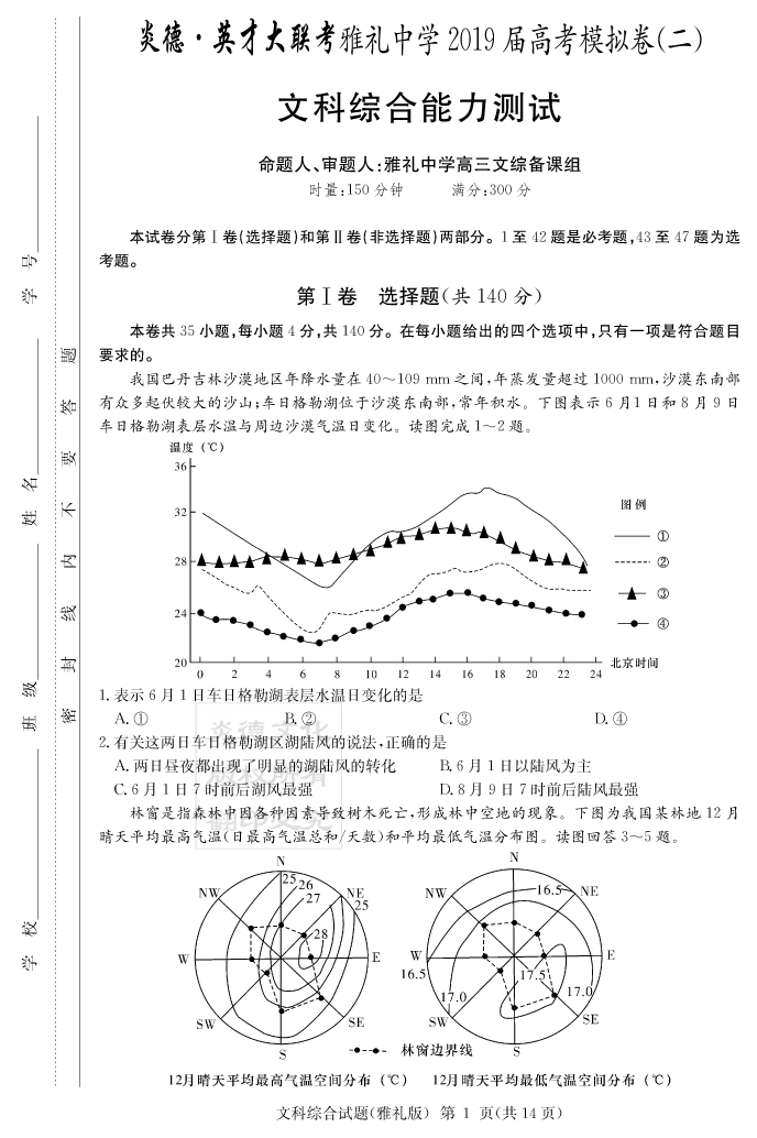 【文綜】炎德英才大聯(lián)考2019雅禮中學(xué)高三10次月考(模擬二)