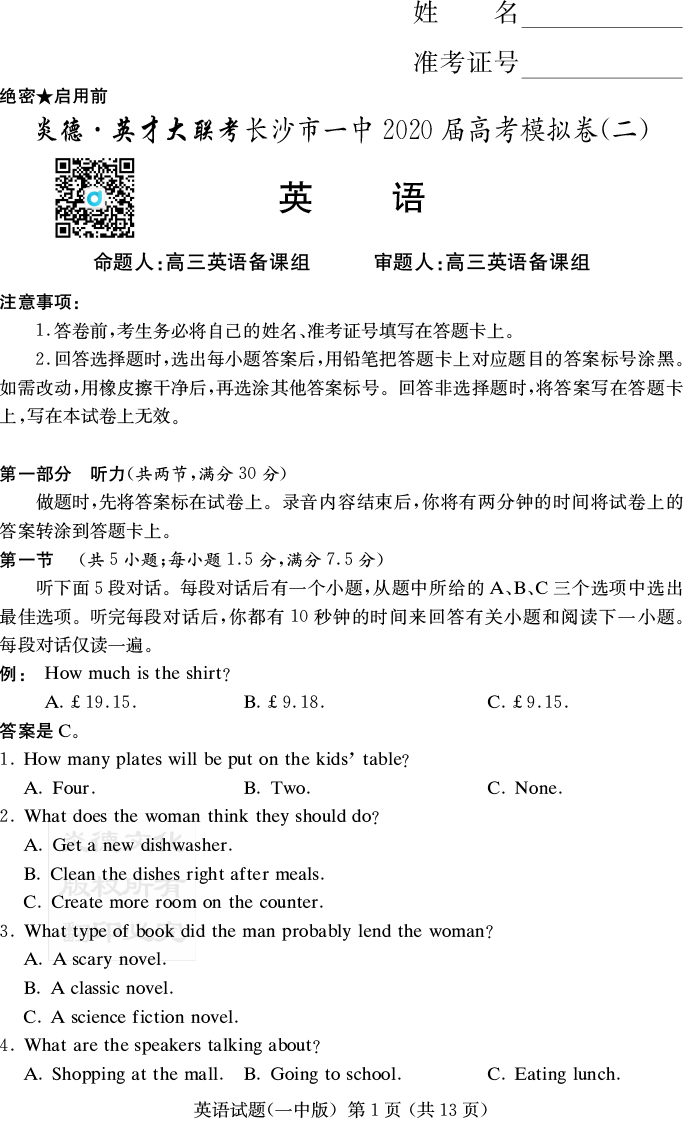| 資源類別: | 名校月考 | |