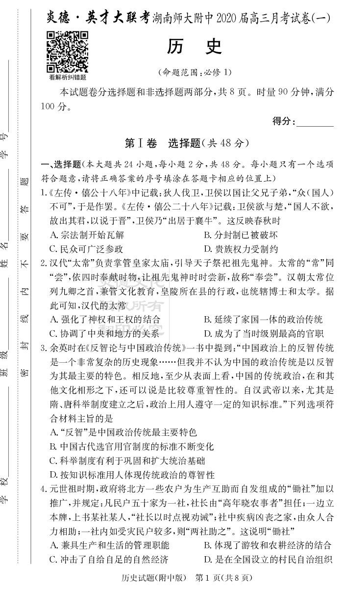 | 資源類別: | 名校月考 | |
