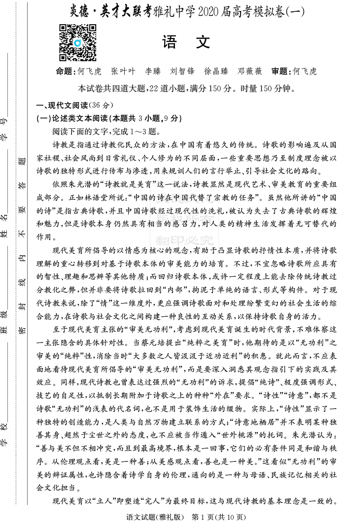 | 資源類別: | 名校月考 | |