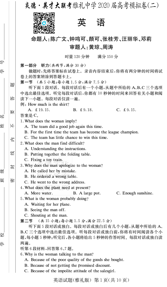 | 資源類別: | 名校月考 | |