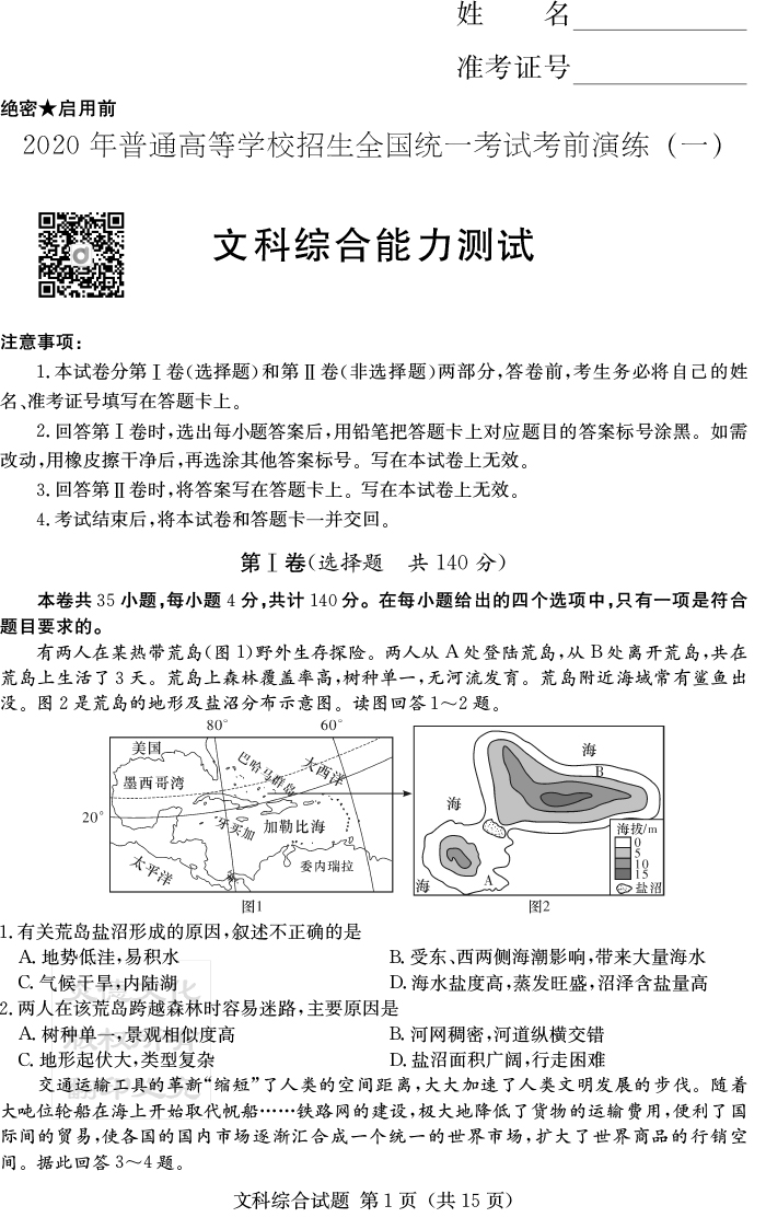 上一篇:【文數(shù)】2020年普通高等學校招生全國統(tǒng)一考試考前演練(一)