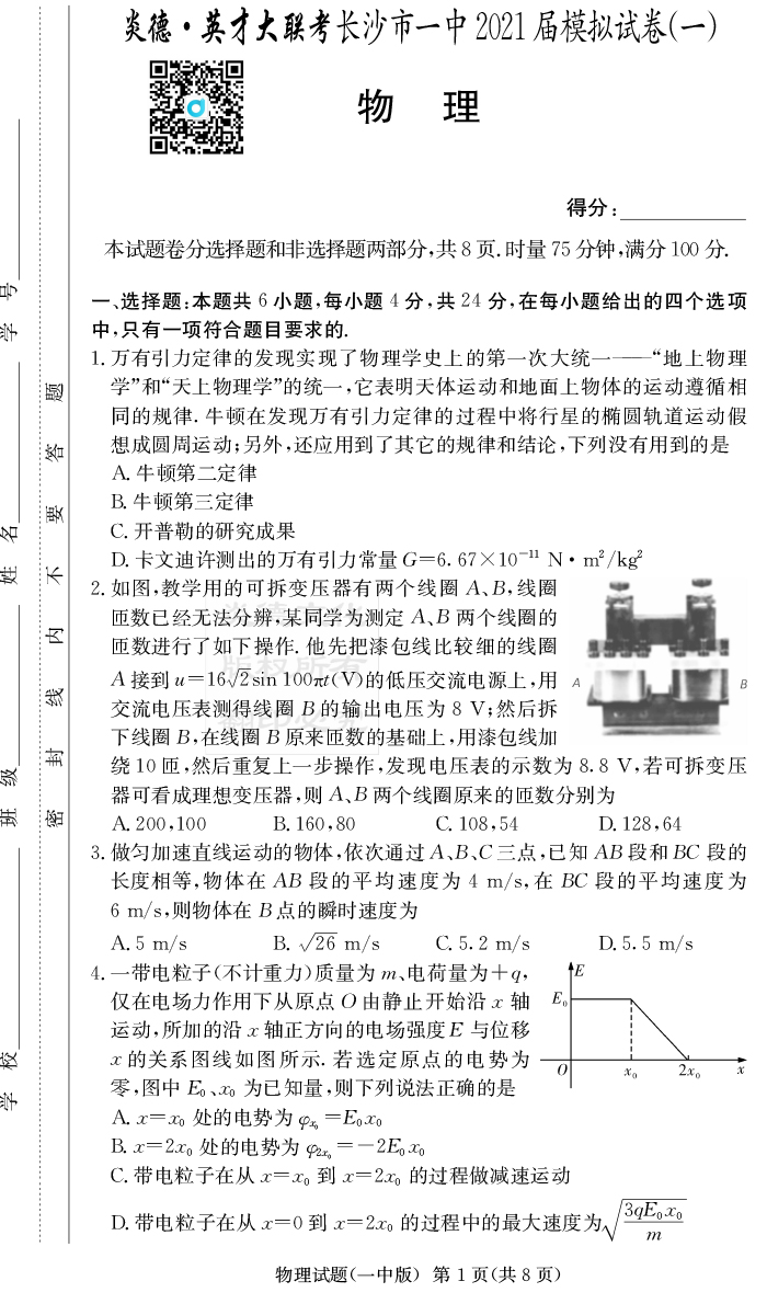 上一篇:【數(shù)學(xué)】炎德英才大聯(lián)考2021屆長(zhǎng)沙市一中高三10次月考(模擬一)