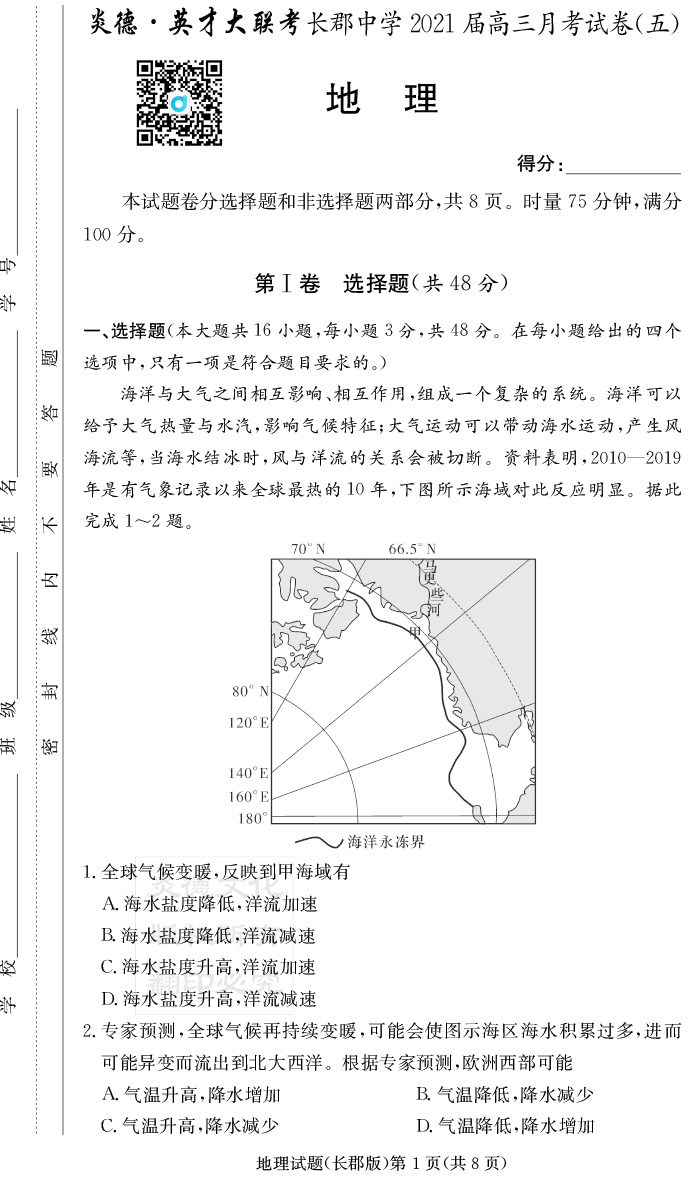 上一篇:【政治】炎德英才大聯(lián)考2021屆長(zhǎng)郡中學(xué)高三4次月考(高三聯(lián)合體12月聯(lián)考)