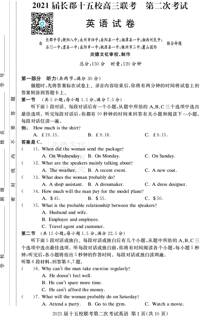 下一篇:【語(yǔ)文】炎德英才大聯(lián)考2021屆長(zhǎng)郡中學(xué)高三8次月考(十五校聯(lián)考二)
