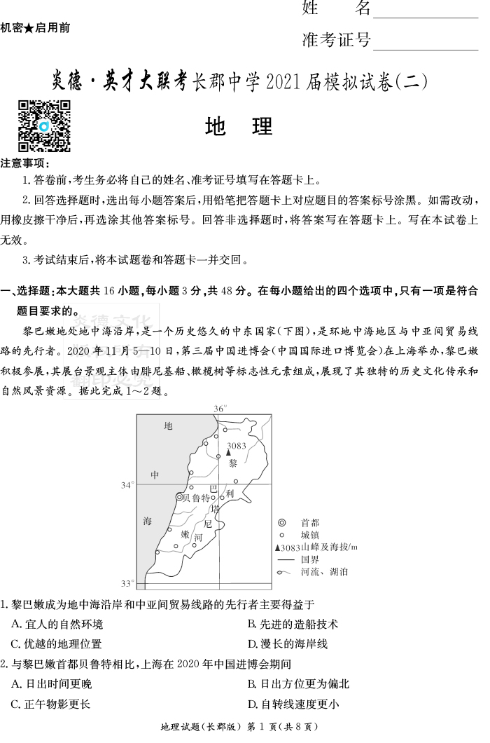| 資源類別: | 名校月考 | |
