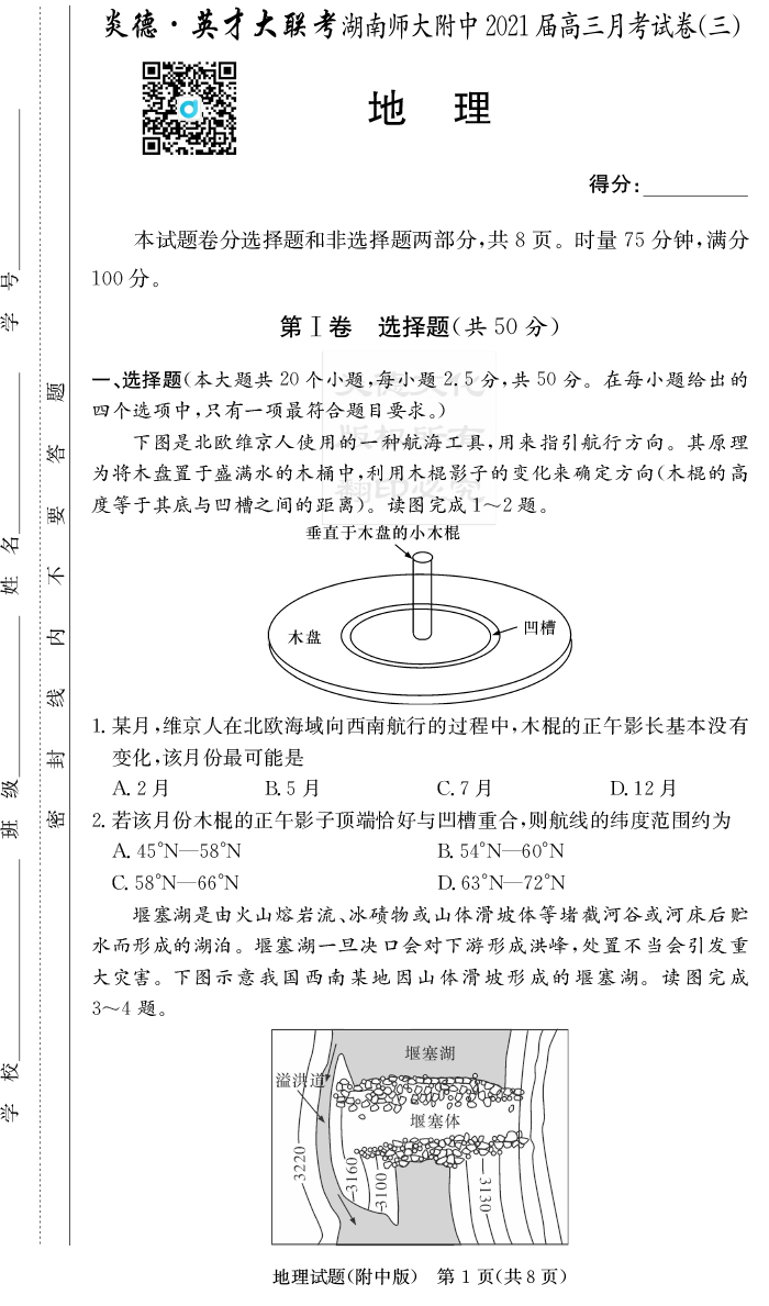 2026湖南師大附中新高考考前小題訓練·地理