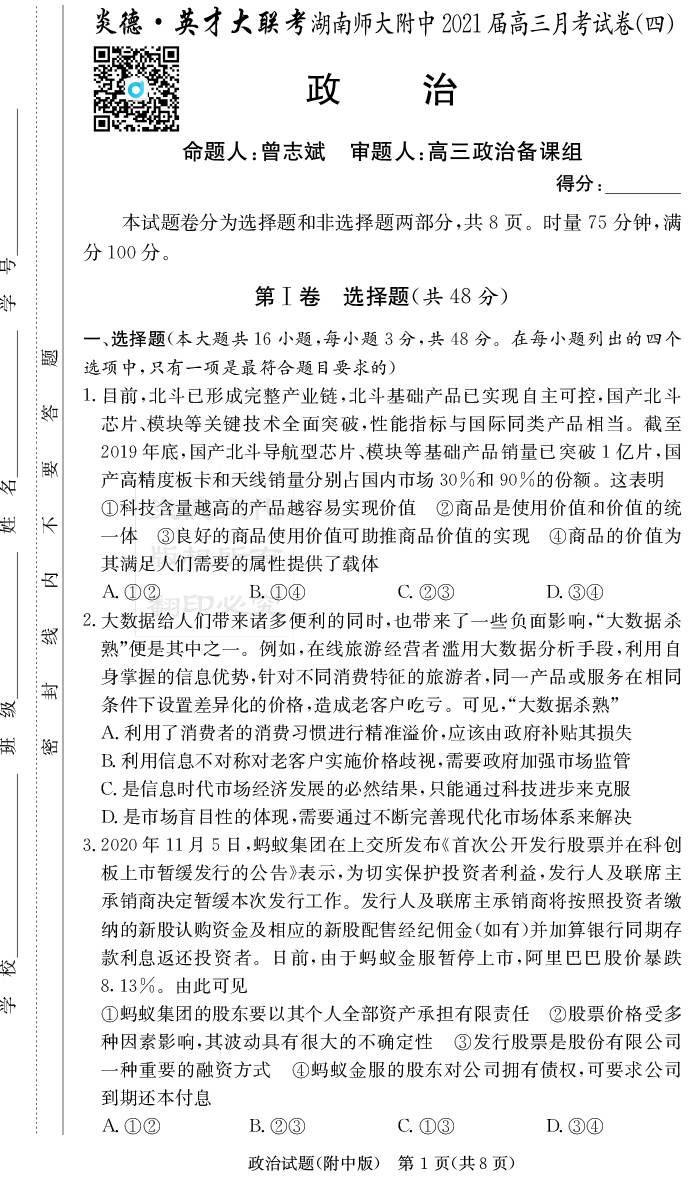 | 資源類別: | 名校月考 | |