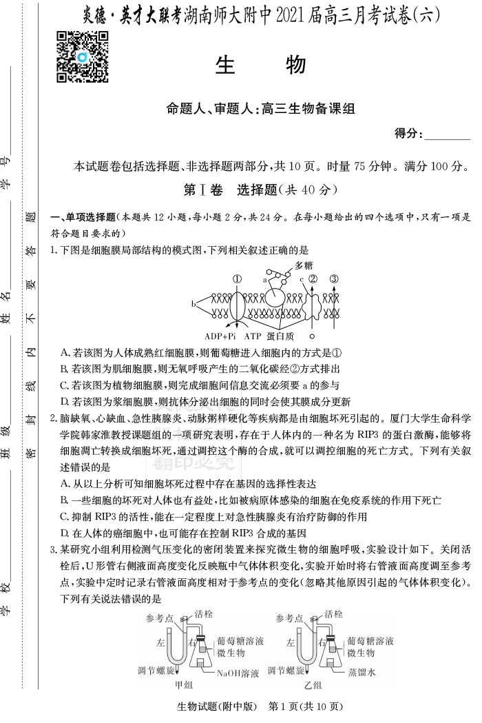| 資源類別: | 名校月考 | |