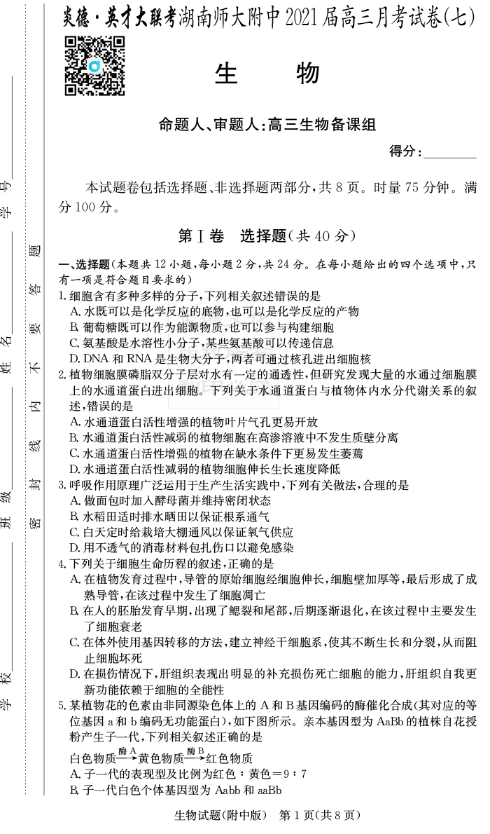 | 資源類別: | 名校月考 | |
