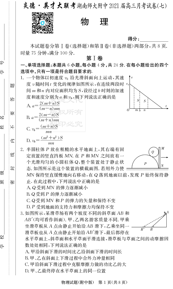 2026年高中寒假作業(yè)自主學習作業(yè)本·高一年級·物理