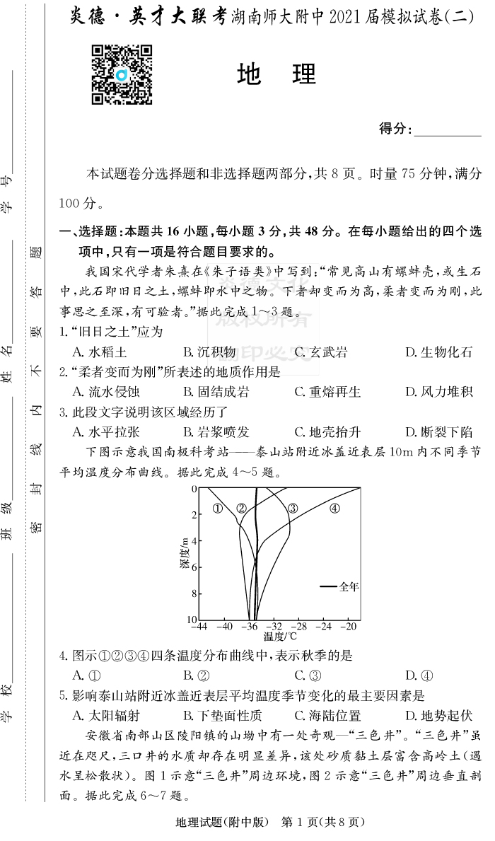2026湖南師大附中新高考考前小題訓練·地理