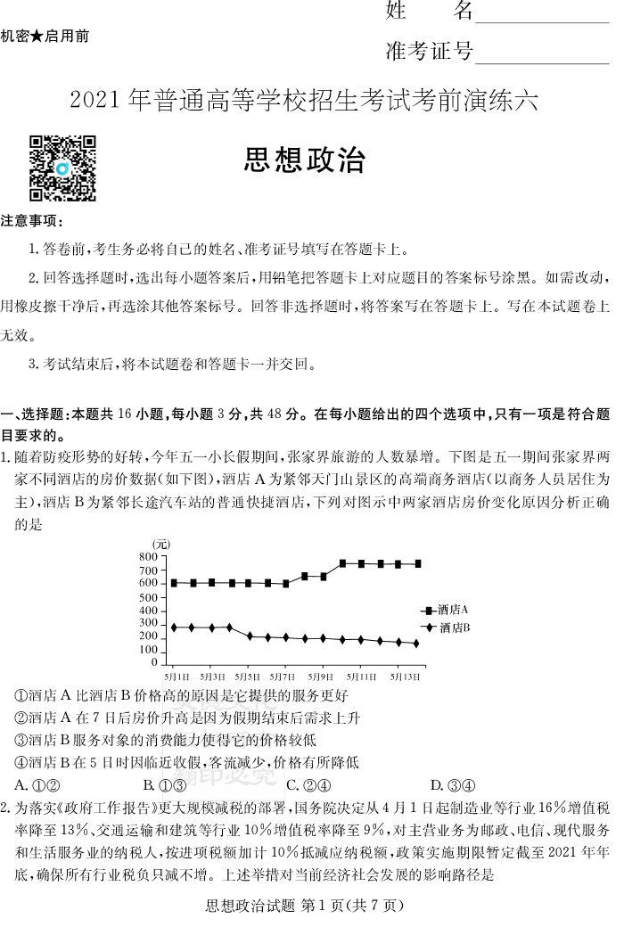 上一篇:【語(yǔ)文】2021年普通高等學(xué)校招生全國(guó)統(tǒng)一考試考前演練(六)