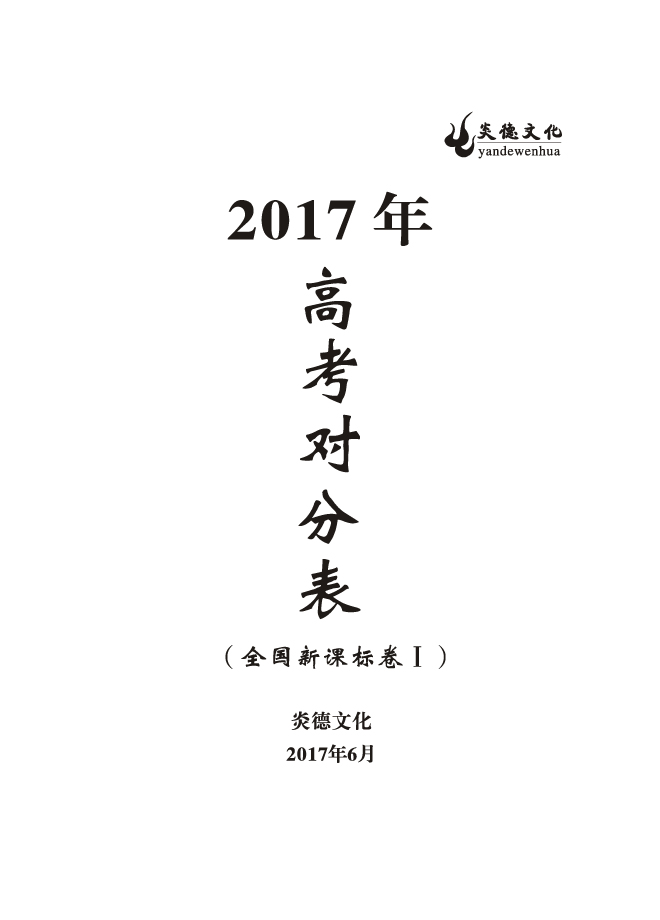 2017高考全國卷Ⅰ對(duì)分表