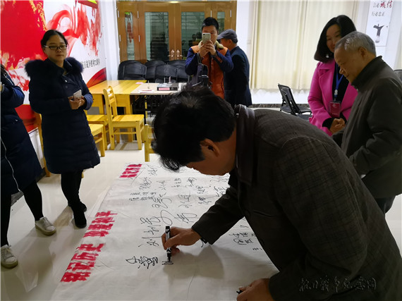 長沙市關工委主任董學生在敦促日本政府向中國人民真誠道歉簽名布上簽名