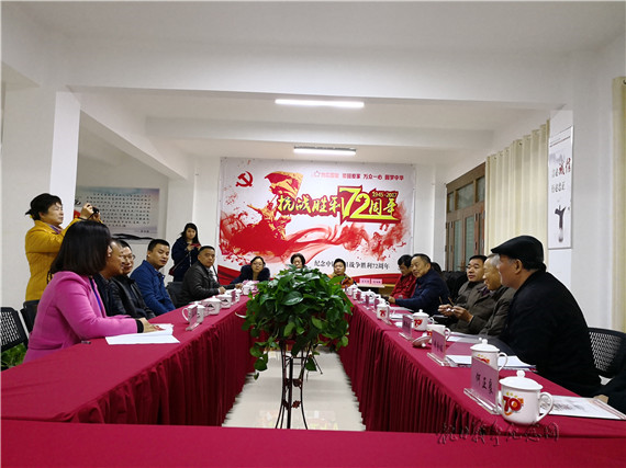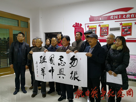 長沙市關工委主任董學生為抗日戰(zhàn)爭圖書館題字(前排左起:唐得之、董學生、何譽軍)