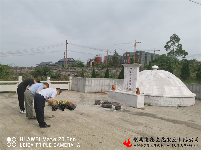 2021年5月5日,在廣西貴港出差的抗日戰(zhàn)爭(zhēng)紀(jì)念網(wǎng)總編、抗日戰(zhàn)爭(zhēng)圖書館館長(zhǎng)、長(zhǎng)沙抗戰(zhàn)文化研究會(huì)會(huì)長(zhǎng)、湖南炎德文化實(shí)業(yè)有限公司董事長(zhǎng)何譽(yù)軍、湖南炎德文化實(shí)業(yè)有限公司黨支部書記熊祖平、黨員何琳斌、譚志強(qiáng)等,到平南大乙?guī)X抗日烈士紀(jì)念園祭拜抗日英烈。
