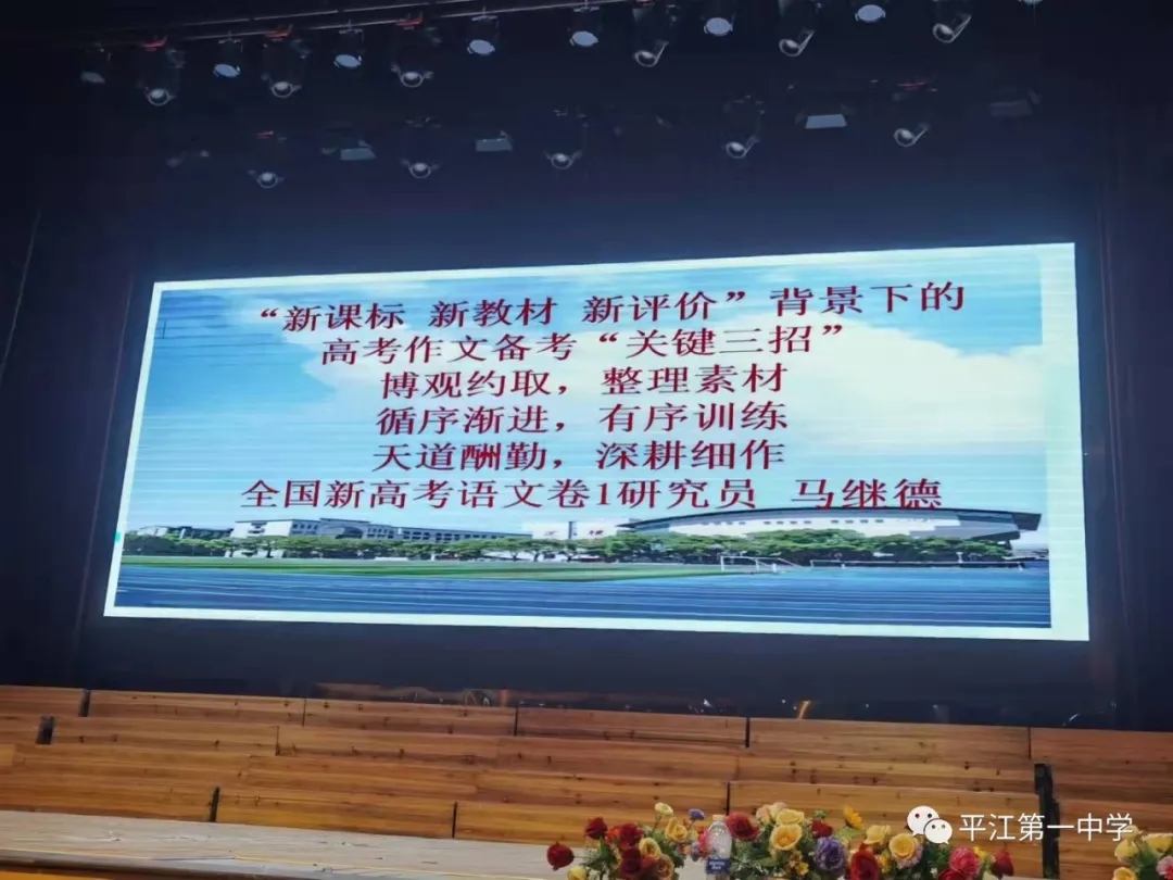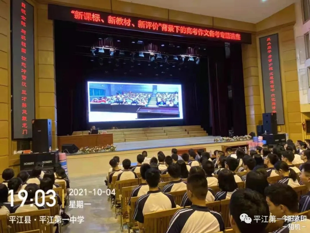 為進一步解析2022新高考動態(tài),把握高考新資訊,科學備考,10月4日晚,我校特邀請了全國語文名師、長郡中學特聘高中語文研究員、清北班培訓(xùn)專家、湖南省高考評卷專家馬繼德老師蒞臨平江一中進行專題講座。學校黨委委員、校長助理、教導(dǎo)處主任單五柱老師、教研室主任許衛(wèi)兵老師、高三語文教師、班主任及全體高三學生參加了講座。