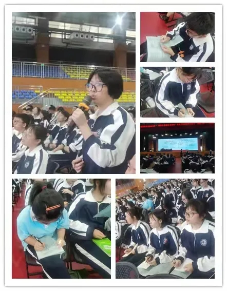 繡口錦心的馬老師,親和有力,舒緩儒雅。講座既有的理論指導(dǎo),又有真誠的經(jīng)驗(yàn)介紹。從大處看,思路清晰,體系圓整;自細(xì)節(jié)觀,字字金玉、句句箴言。美文頻頻援引,朗讀之聲瑯瑯;師生互動環(huán)節(jié),氣氛活躍融洽。馬老師給主動展示的學(xué)生送出獎品小冊子,更是引來嘖嘖羨慕。全體師生聽得津津有味,在筆記本上認(rèn)真詳細(xì)做筆記。因?yàn)椋覀冋嬲媲星懈械?,馬老師“輕描淡寫”中分享的每一種提分招數(shù)、每一種素材積累途徑,我們經(jīng)過長久踐行甚至走過彎路方能認(rèn)知,在此刻真正感到“于我心有戚戚焉”。對于“干貨”,我們的態(tài)度是,先占有,再用時間的清水慢慢泡開,變成豐美盈潤的寫作原材,烹飪,汲取,滋養(yǎng)我們的文筆。